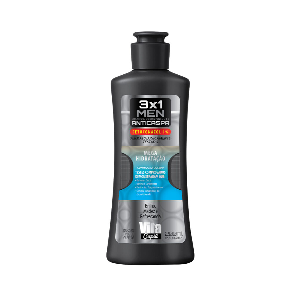 O Shampoo e Condicionador Vita Capili Men 3×1 + Anticaspa Tradicional foi desenvolvido para oferecer limpeza eficaz, condicionamento e ação anticaspa em um único produto prático. Sua fórmula contém CETOCONAZOL 1%, ativo potente no combate à caspa, além de ingredientes que controlam a oleosidade e aliviam o desconforto do couro cabeludo.