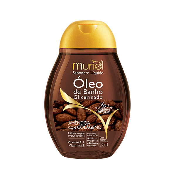 O Óleo de Banho Glicerinado Muriel Amêndoa com Colágeno oferece hidratação profunda já durante o banho, combinando o poder nutritivo do óleo de amêndoas com a ação firmadora do colágeno. Sua fórmula glicerinada limpa suavemente e ajuda a preservar a elasticidade natural da pele.