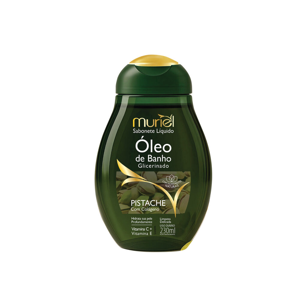 O Óleo de Banho Glicerinado Muriel Pistache com Colágeno oferece hidratação intensa com um toque nutritivo e revitalizante durante o banho. Sua fórmula enriquecida com colágeno e extrato de pistache ajuda a preservar a firmeza da pele enquanto forma uma película protetora que evita o ressecamento.