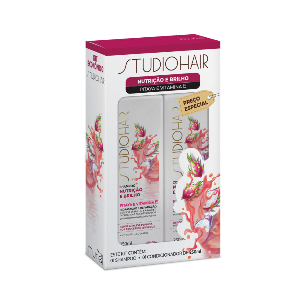 O Kit Shampoo e Condicionador Studio Hair Pitaya e Vitamina E oferece uma experiência completa de cuidado capilar, unindo limpeza suave e nutrição intensa. Com extrato de Pitaya, fruta rica em antioxidantes e propriedades revitalizantes, e Vitamina E, reconhecida por sua ação protetora e hidratante, este kit trata os fios da raiz às pontas.