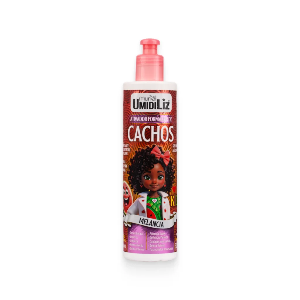 Modo de uso: Com os cabelos limpos e úmidos, aplique o Umidiliz Ativador e Formador de Cachos Melancia, massageando suavemente os fios desde a raiz até as pontas. Pode ser usado sempre que necessário.