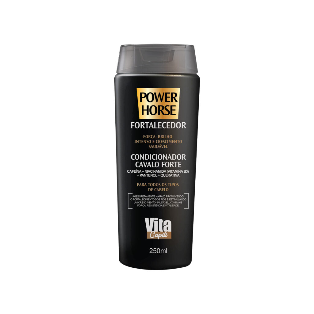 O Condicionador Cavalo Forte Power Horse da linha Vita Capili hidrata intensamente enquanto fortalece os fios da raiz às pontas, promovendo crescimento saudável, resistência e brilho. Sua fórmula fortalecedora desembaraça com facilidade sem pesar, auxiliando na redução da quebra e na recuperação da força capilar.