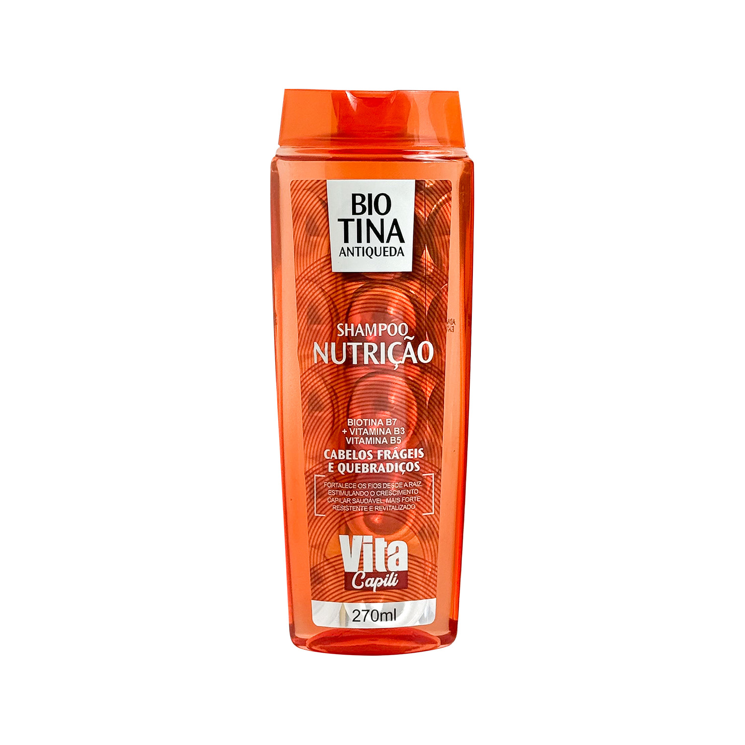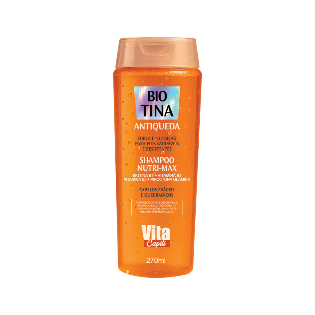 O Shampoo Nutri Max Biotina Antiqueda da linha Vita Capili fortalece os fios desde a raiz, auxiliando no combate à queda e na recuperação da densidade capilar. Sua fórmula enriquecida com biotina — conhecida como a vitamina da beleza — nutre o couro cabeludo, estimula o crescimento saudável e melhora a resistência dos fios.